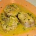 4 rodajas de merluza 12 almejas 100 g de guisantes frescos pelados 1 diente de ajo 1 puerro 4 espárragos verdes 1 huevo 1 cucharada de harina 1 copa de vino[...]