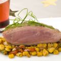 - Para 2 personas - 200 g de presa de cerdo ibérico 2 plátanos 6 espárragos trigueros 1/2 cebolla 1/2 zanahoria 25 g de azúcar 1 copa de vino blanco 50 ml de[...]