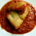 - Para 2 personas: 2 lomo de bacalao desalado de 150 g cada uno 3 pimientos rojos 2 dientes de ajo huevo, harina y pan rallado para empanar agar agar en polvo[...]