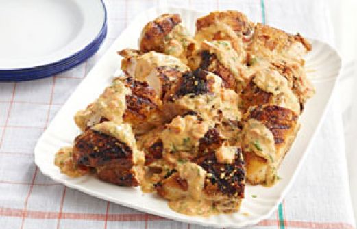 Necesitas 1/4 taza de vinagreta al limón KRAFT Zesty Lime Vinaigrette Dressing 4 dientes de ajo , bien picaditos 6 pechugas de pollo con hueso grandes (4-1/2 lb) 3 tomates Roma (plum) , picados 1 chile jalapeño , bien picadito [...]
