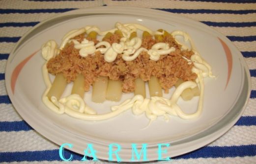 Los esparragos, los comemos generalmente solos ó con mahonesa, en esta receta van acompañados de atún en aceite y mahonesa Ingredientes (3 comensales) 2 botes de espárragos blancos 1 lata de atún ó 2 1 bote de Mahonesa (ó hacerla en casa) Conversor de medidas | Cont [...]