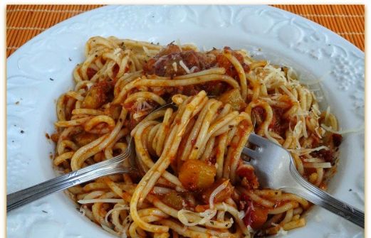- En una sartén, sofreír con un poco de aceite 1 cebolla picada; añadir 4 tomates pelados y picados, y cocer durante 15´ con hojas de albahaca picada, sal y pimienta . Al final de la cocción, añadir 1 cuch. de vinagre balsámico de Módena . - En otra sartén con aceite , dorar 1 ó 2 b [...]