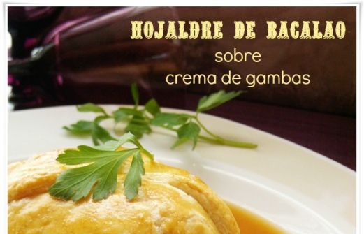 Dos lomos de bacalao congelado al punto de sal 200 g de champiñones 200 g de gambas 2 dientes de ajo 2 cebollas grande Mayonesa Queso rallado Hojaldre (Lidl) 1 huevo para pintar Agua Las cabezas y las cáscaras de las gambas que hemos u [...]