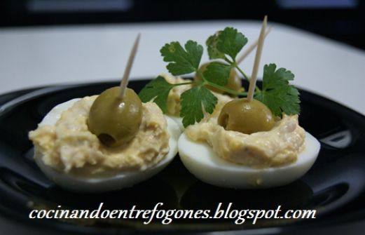 INGREDIENTES: 6 Huevos 3 Latas de atún Mayonesa Perejil 12 Aceitunas rellenas de antxoa ELABORACIÓN 1. Ponemos una cazuela al fuego con agua, cuando rompa a hervir, metemos los huevos con cuidado que no se rompan. Cocemos durante 12-15 minutos. 2. Pasado ese tiem [...]
