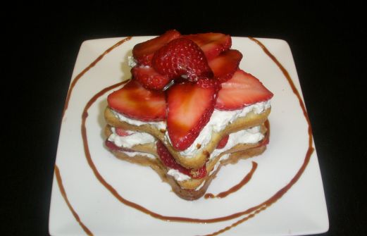 Un jugoso bizcocho, unas dulces fresas y la cremosidad de la nata.