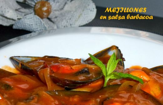 Vuelvo a la cocina, y con muchas ganas de preparar platos ricos de nuestra gastronomía española. Hoy toca mejillones, pero con una salsa muy especial, y poco convencional: "barbacoa" .