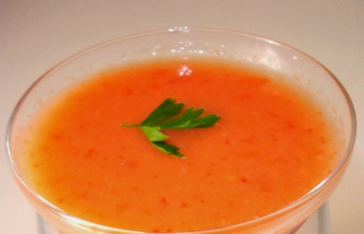 Ingredientes: - 10 tomates maduros - 1 pimiento rojo - 2 pepinos - 1 dientes de ajo pelado - 40 grms de pan - 150 cl de agua mineral - Sal al gusto - 7 cucharas soperas de aceite de oliva - 5 cucharadas soperas de vinagre de vino Elaboración: Pela [...]