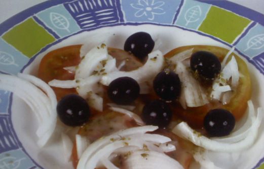 ingredientes para 4 personas: 1 kg de tomates, 2 cebollas, 50 gr de aceitunas negras, aceite de oliva, orégano, comino, y sal elaboración: lavar y cortar los tomates en rodajas lavar y cortar la cebolla en rodajas muy finas; mezclar en una ensaladera la cebolla el tomate las aceitunas mezclar e [...]
