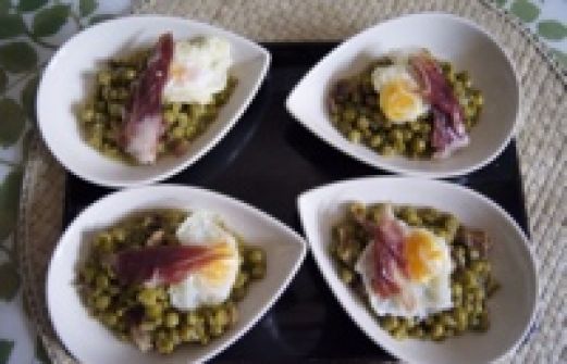 Ingredientes (para 4 personas): - 1 kg. de guisantes. - 1 Cebolla. - 1 Diente de ajo. - Jamón Serrano (mejor ibérico) en taquitos y lonchas para adornar. - 4 Huevos de codorniz. Elaboración: En una cazuela ponemos un poco de aceite y cuando esté caliente, ponemos la cebolla pica [...]