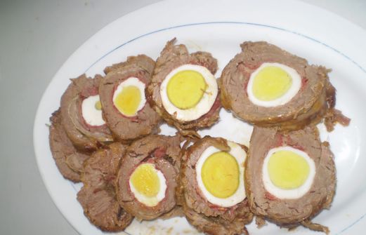 Ingredientes: - Tapa abierta para rellenar - Huevo cocido - Jamón serrano - Pimiento de lata - Aceite - Vino blanco o sidra - Sal y pimienta Preparación: Se abre la carne, se le hecha sal y pimienta, el pimiento, el jamón y el huevo. Se va enrollando poco a poco para que no se le caig [...]