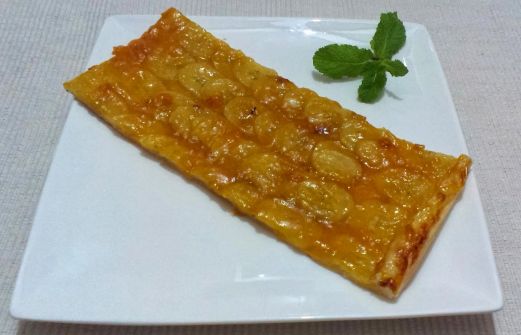 INGREDIENTES 1 placa de hojaldre fresca 2-3 bananas Mermelada de melocoton PREPARACION Preparar el horno a 200 grados , mientras tanto , quitar el envoltorio del hojaldre y dejar tal y como viene , ir poniendo las rodajas de las bananas en linea hasta forrar todo el hojaldre , u [...]