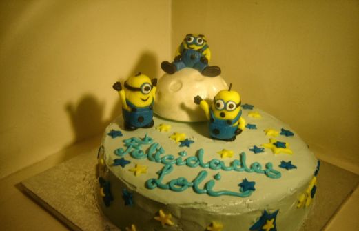 Hola, hoy os enseño esta tarta de los Minions de la peli Gru mi villano favorito que hicimos mi amiga Rocio y yo para Loli, su sobrina.
