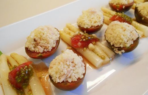 Me llaman muchísimo la atención todas las variedades que se pueden encontrar de tomates, y el otro día vi éstos que no conocía. Son unos tomates cherry pera muy grandes y con el color del kumato. Tiré el envase así que no te puedo decir el nombre exacto de esta variedad (ni exacto ni parecido p [...]