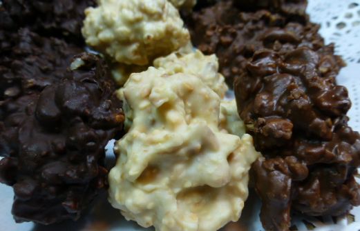 ROCAS DE CHOCOLATE INGREDIENTES 125 Gramos de chocolate blanco 125 Gramos de chocolate con leche 125 Gramos de chocolate negro 70 Gramos de nueces 70 Gramos de cacahuetes 70 Gramos de almendras tostadas PREPARACIÓN Trituramos l [...]