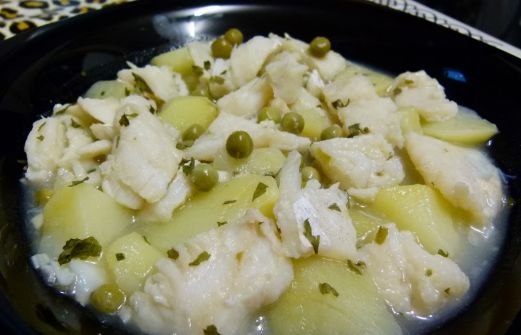 Ingredientes: 1Kg de Bacalao 8 Patatas 1 Cebolla 1 Pimiento Verde "P" 4 dientes de Ajo 2 hojas de Laurel Vino Blanco Coñac Pimienta Blanca y Negra 1 lata de Guisantes Perejil Proceso: Picamos el ajo y la cebolla en pequeñito y co [...]