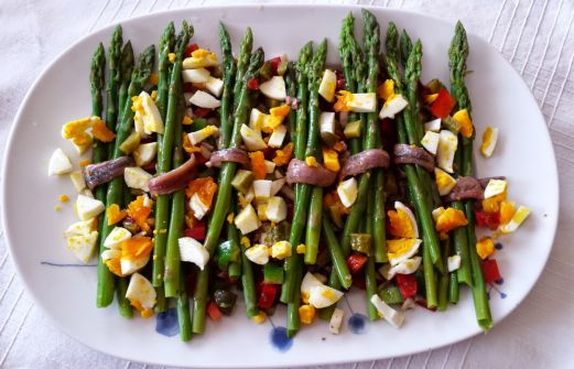 Esta receta es una versión de otra que apareció publicada en el número 14 de la revista Saber cocinar . Se trata de una ensalada muy completa, rica, refrescante y llena de color. INGREDIENTES. · 2 manojos de espárragos verdes. · 2 latas de anchoas. · Un trozo de pimiento [...]