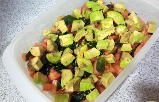 Figura 1. Ensalada de tomate, albahaca y aguacate en mi tartera