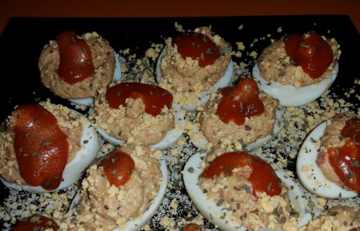 6 huevos cocidos 1 lata de sardinillas en aceite de oliva 1 pimiento morrón en conserva 1 cucharada de tomate frito 3 cucharadas de mayonesa La técnica es básicamente la misma que en todas las recetas de huevos rellenos fríos: Se parten los huevos en mitades, se extraen la [...]