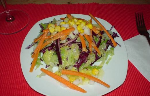 Ingredientes: ¼ de repollo ¼ de lombarda ½ cebolla dulce 1 zanahoria ½ lata de maíz dulce 1 c/c de mostaza 2 c/s de vinagre de vino Pimienta 5 c/s de aceite de oliva Sal [...]