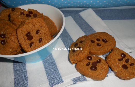 Terminamos el mes con unas galletas con muchas calorÃas pero buenas sà que están. Aquà les dejo la receta: Ingredientes: 225 gramos de mantequilla a temperatura ambiente 200 gramos de azúcar moreno 200 gramos de azúcar 2 huevos 1/2 cucharadita de esenc [...]