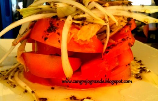 Ensalada de Tomate, Ventresca, Cebolla y Olivada. Esta ensalada nos gusta mucho en casa y para compartir es una ensalada ideal. Nosotros siempre la compartimos cuando vamos a la playa de Cambrils y comemos en Xiringuito Neptuno . De allí es esta deliciosa ensalada. Deseamos que os guste tanto c [...]