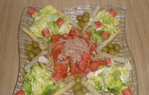 Hola a todos. Esta noche he preparado una ensalada para cenar, y me ha quedado tan rica que he decidido ponerla en el blog: Los ingredientes que he utilizado: - Tomate - Olivas rellenas - Brotes de soja - Atún - Espárragos - Lechuga - Bocas de mar - Aceite - Vinagr [...]