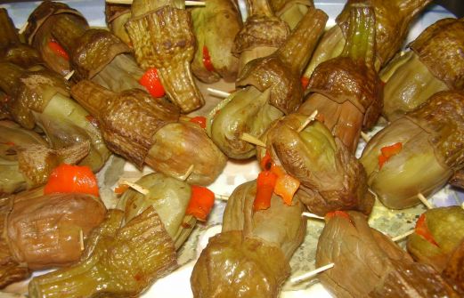 INGREDIENTES: -Berenjenas pequeñitas. -Ajos. -Pimientos rojos asados. -Aceite de oliva. -Vinagre. -Sal. -Orégano. -Pimentón dulce. -Cominos. -Palillos. Cortamos un poco el rabito y las barbas a las berenjenas y ponemos a cocerlas en agua en agua y sal durante 5 minutos, escurrimos y reservamos. [...]