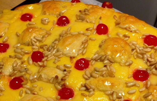 COCA DE CREMA Ingredientes -200ml leche -350gr harina (tuve que añadir más cuando amasaba porque estaba muy pegajosa) -50gr mantequilla. -30 gr levadura de panadería -piel de un limón o gotitas de esencia de limón -1 huevo -guindas rojas -50gr piñones -2 cucharadas soperas azúcar -1 cuc [...]