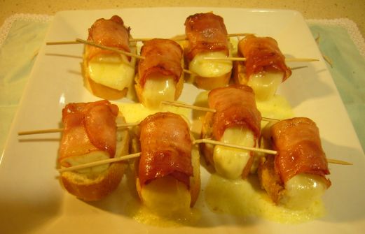 Ingredients Bacó formatge que fongui pa P re paració Agafeu el bacó i passeu-lo per la planxa, només volta i volta. Prepareu el formatge, plegat i cargolat i emboliqueu-lo amb el bacó i fixeu-lo amb un escuradents. Col.loqueu-los sobre unes llesques de pa i poseu-les al forn a 200º [...]