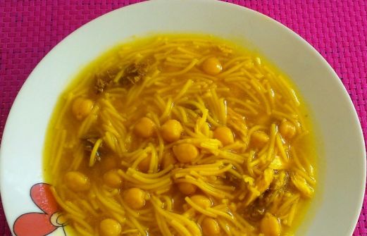 Ingredientes: 1/2 Pollo 1 trozo de carne de ternera 1 cebolla colorante alimentario 200gr garbanzos agua sal fideos hierba huerto (hierba buena) Preparación Dejamos toda la noche los garbanzos en remojo,pelamos y troceamos la cebolla. Limpiamos la carne, desechando cualquier resto de ví [...]