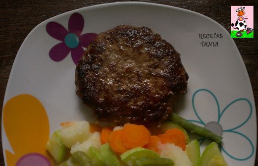 Ingredientes: 400gr de ternera molida 1 Zanahoria 12 habichuelas (judias verdes) 1 calabacino 2 papas (patatas) pimienta molida sal aceite de oliva vinagre Preparación: A la carne le ponemos un poquito de sal y pimienta molida,separamos en dos (200gr,para cada hamburguesa) y vamos amasando la c [...]
