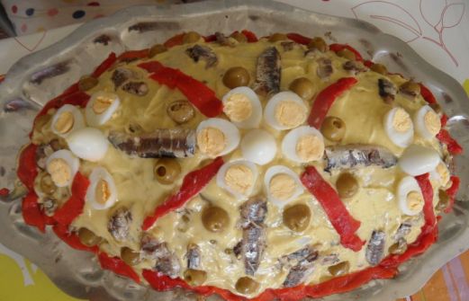 ENSALADILLA RUSA DE SARDINAS Y ALL I OLI Ensaladilla rusa de sardinas y all i oli INGREDIENTES PARA 8 o 10 PERSONAS: 2 kg. de patatas 200 grs. de guisantes (de bote ya cocidos) sal 32 huevos de codorniz cocidos (tienen menos colesterol). 250 grs. olivas rellenas de a [...]