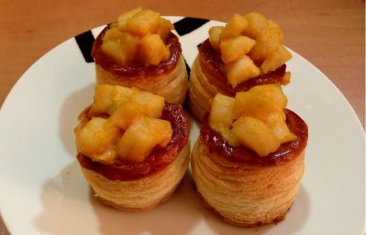 Un aperitivo sencillo preparado con vieiras y un sofrito de puerro. Al no llevar salsa es más ligero y mantiene el sabor auténtico y exquisito de las vieiras.