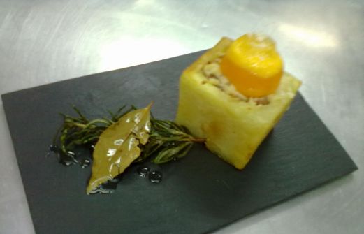 I ngredientes: -2 papas -2 huevos -1/2 cebolla -50gr de jamón serrano -Tomillo, romero, sal, aceite de oliva (al gusto) Elaboración: Empezamos por cuadrar una papa y vaciarla con una cuacharilla de café, dejandola como uPna caja y la comfitamos en abundante a [...]