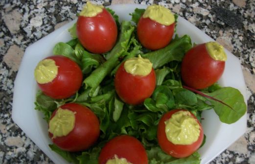 -Lavar los tomates y secarlos. Con mucho cuidado vaciarlos con un sacabolas o una cucharilla. Reservar solo la c [...]