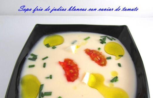 Ingredientes 3/4personas: 300 gramos de judías blancas cocidas, 100 mililitros de caldo de ave o el mismo jugo dela cocción de las judías, 150 gramos de queso fresco (opcional guardar un poco para decorar), 1 diente de ajo, pimienta negra recién molida, caviar de tomate (las semillas, nombre da [...]