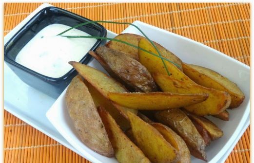 - Lavar bien 4-5 patatas pequeñas, cortarlas por la mitad a lo ancho, y cada mitad en gajos (sin pelar) y cocer en agua hirviendo con sal durante 6´. Sacar y secar muy bien. - Mezclar en una bolsa 2 cuch de harina , 1 cdta de ajo en polvo, 1 cdta de orégano , 1 cdta de pimentón dulc [...]