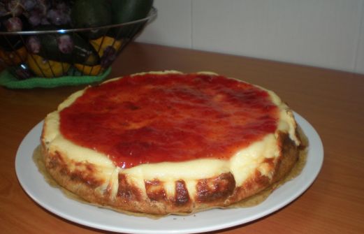Ingredientes: 4 huevos, 600 gramos de queso crema (tipo 'Philadelphia'), 300 gramos de azúcar, 200 ml nata líquida, 1 paquete de galletas maría, 100 gramos de mantequilla, mermelada de fresa. Picamos las galletas y las mezclamos con la mantequilla hasta formar una pasta, con la cubriremo [...]