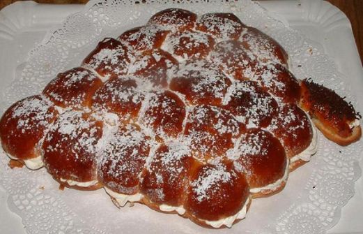 Con la receta del Roscón de reyes, rellena de nata. Y rellena de trufa.