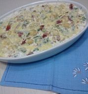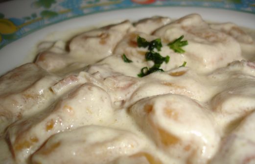 Ingredientes Para 4 personas 400g de calabaza 2 cebollas 4 lonchas de beicon 350g de harina 2 claras de huevo 500ml de nata lÃquida Agua Aceite de oliva Sal Preparación Primero, empezamos haciendo los ñoquis, tenemos que cortar la calabaza en trocitos y esparcirla en una band [...]