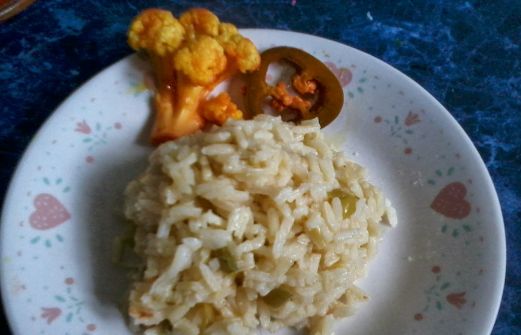 1 Libra de Arroz blanco 1 cda de aceite 1 cda de cebolla finamente picada 1 cda de arvejas 1 consome de pollo Sal al gusto 1 vaso y medio de agua En una cacerola sofrie el arroz y la cebolla hasta que el arroz este dorado, agrega el agua y las arvejas. Agrega sal y/o el consome de pol [...]