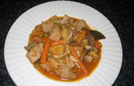Ingredientes - 1 solomillo a trocitos - Cebolla, ajo, laurel - Vino blanco, salsa de soja - 2 cucharadas Tomate frito - pimienta negra molida, aceite de oliva - 1 pastilla Esencias de Tomillo y Romero G. B. Hacer un sofrito con el ajo y la cebolla fileteados y la hoja de laurel, a cont [...]