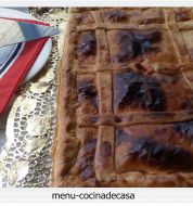 Ingredientes: 2 láminas de masa de hojaldre o masa de empanada. Cebolla confitada. 500 gr. de langostinos crudos. 250 gr. de queso de untar. 1 huevo. Sésamo (Opcional). Preparación: Extendemos la primera lámina de hojaldre y la colocamos sobre la bandeja de horno f [...]