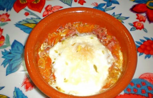 Colocar en el fondo de cuatro cazuelitas de barro 1 tomate picado en cuadrados y dos lonc [...]
