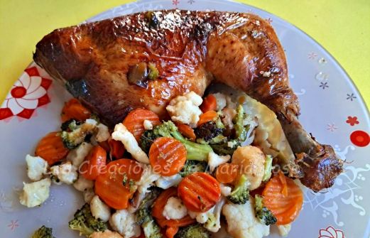 Hoy hemos comido divinamente. Hace mucho que no hacia pollo asado y hay que ver que rico con las verduras asadas. Como veis en la foto de abajo hice 2 raciones. INGREDIENTES: 2 muslos de pollo verduras zumo de manzana PREPARACIÓN: Encendemos el horno a 180º calor arriba y abajo. Ponemos en poll [...]