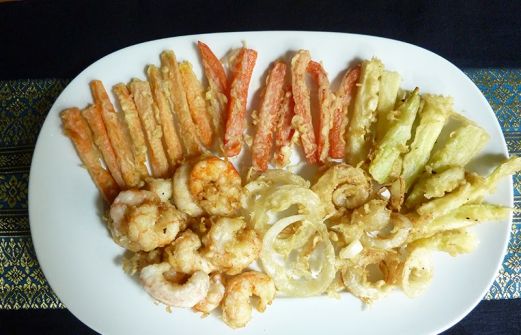 El tempura o tenpura se refiere a la fritura rápida japonesa, en especial a los mariscos y verduras. Cada trozo de comida debe tener el tamaño de un bocado y se fríe en aceite a 180 ℃ tan solo durante dos o tres minutos.