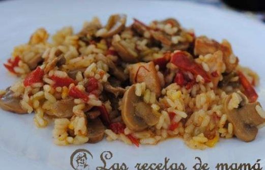 300 g arroz 200 g pollo 250 g champiñón laminado 1 pimiento rojo 3 dientes de ajo 1 tomate pequeño caldo de pollo o agua aceite de oliva virgen extra sal azafrán en hebra Preparación Se pone en el fuego la sa [...]