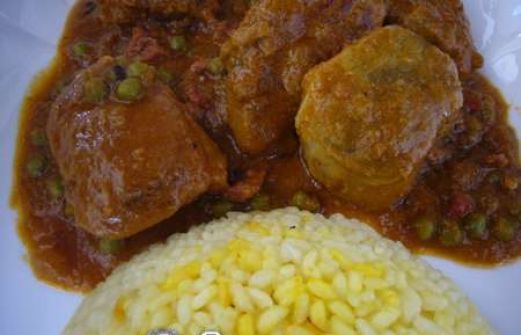 1 pollo grande o el equivalente en carne de cerdo aceite de oliva virgen extra 2 hojas laurel 2 cebollas grandes 6 dientes ajo 1 vaso vino blanco 2 higaditos de pollo sal pimienta azafrán en hebra 1 lata pimie [...]