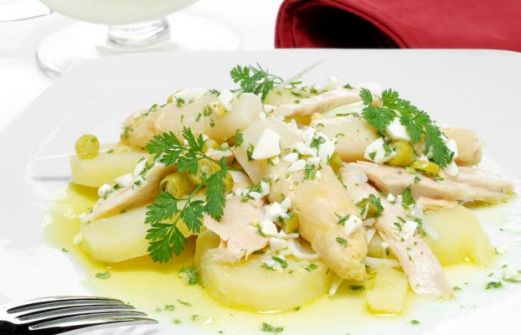 - Para 2 personas: 2 patatas 3 huevos 6 yemas de espárragos 12 guindillas en vinagre 1 cebolleta 10-12 aceitunas 1 lata de ventresca zumo de 1/2 limón vinagre de manzana 1 vaso de aceite de girasol aceite de oliva sal cristales de sal perejil perifollo Elaboración de la ens [...]