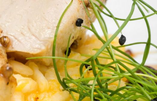 - Para 2 personas: 200 g de arroz 1 pechuga de pollo 1 aguacate 8 zanahorias 1 chalota 1/2 l de caldo de pollo 30 g de mantequilla 30 ml de miel 1 cucharada de azúcar 25 g de queso cremoso 50 ml de vino blanco aceite de oliva sal pimienta una rama de tomillo semilla de cilantr [...]